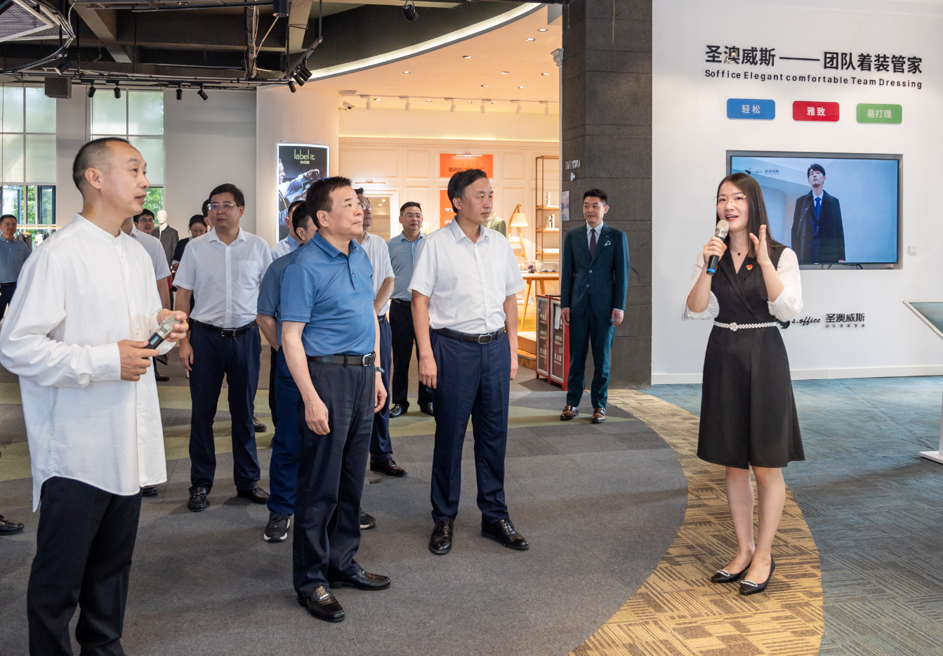 圣得西集團作為湖南省服裝行業(yè)龍頭企業(yè),與時俱進創(chuàng)新發(fā)展,現(xiàn)有圣得西男裝、圣澳威斯職業(yè)裝、自命題私人定制三大品牌。圣澳威斯作為集團旗下專業(yè)的團體職業(yè)裝定制品牌,深耕職服行業(yè)數(shù)十年,形成行政公務(wù)、企業(yè)商務(wù)、教育學(xué)院三大核心產(chǎn)品系列。本次考察陳副省長親身示范了經(jīng)典款的男士夾克公務(wù)裝新品,領(lǐng)導(dǎo)一行給與了圣澳威斯產(chǎn)品充分的肯定。陳副省長表示:“經(jīng)典就是生命力!”當下企業(yè)需加強研產(chǎn)銷一體化的優(yōu)勢,做經(jīng)典、做精品,做強國貨滿足市場的高品質(zhì)需求。