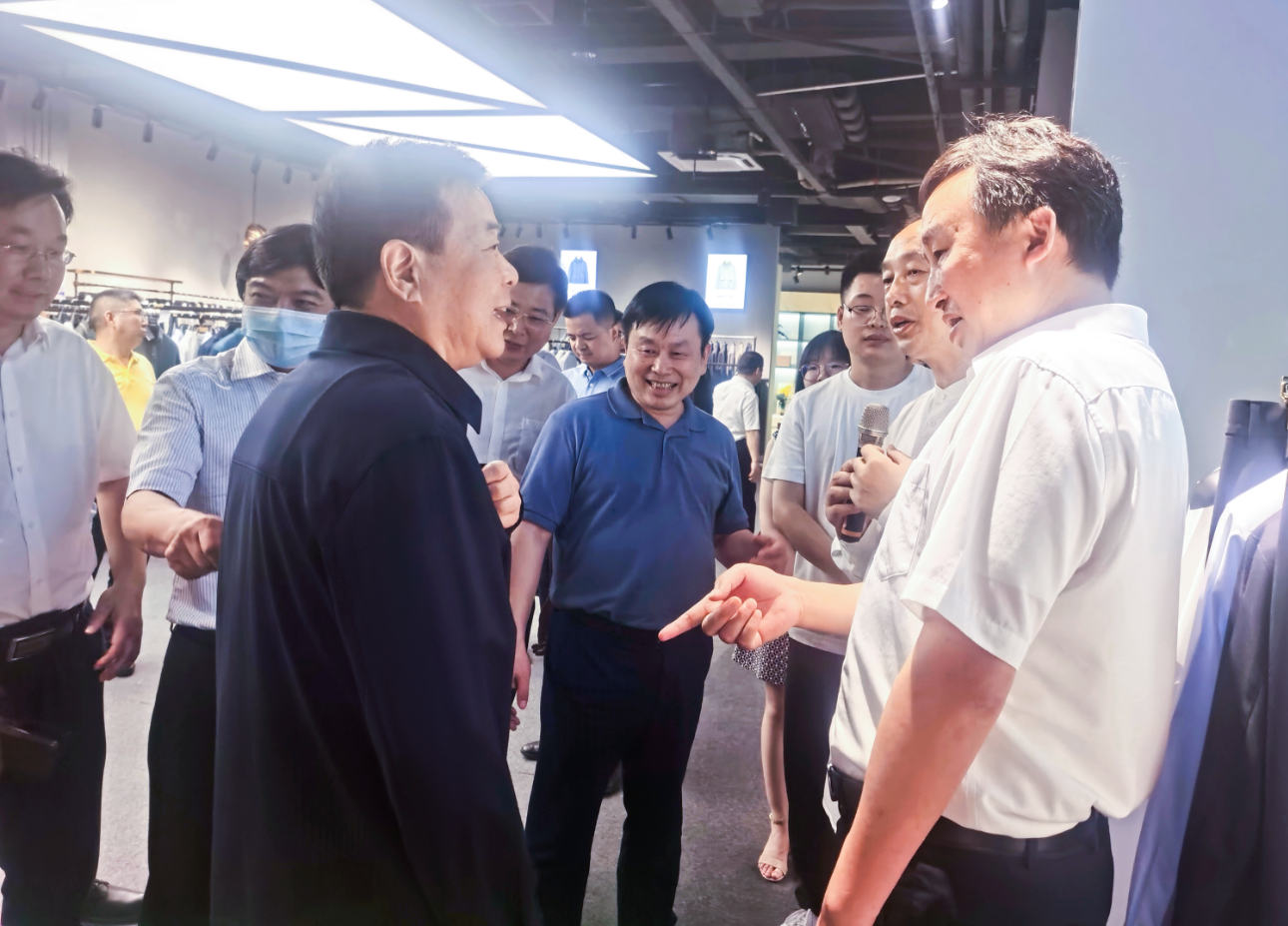6月8日,湖南省副省長陳飛、副秘書長周義祥、湖南省工信廳副廳長黃寶林、湖南省科技廳副廳長魯先華等領(lǐng)導(dǎo)一行蒞臨圣得西集團考察指導(dǎo)工作,在圣得西集團羅文亮董事長的帶領(lǐng)下考察了圣得西產(chǎn)業(yè)園區(qū)智能工廠、企業(yè)文化長廊、全品類服裝展廳以及產(chǎn)品研發(fā)中心,現(xiàn)場體驗了抗菌、防水、抗皺、蓄熱等系列新產(chǎn)品。